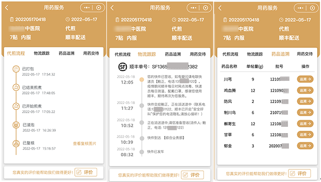 四、建立患者服務(wù)體系,為群眾提供實(shí)時(shí)的代煎流程追溯、物流狀態(tài)跟蹤、藥品溯源信息、用藥指導(dǎo)及服務(wù)評(píng)價(jià)等服務(wù),提升群眾對(duì)中藥藥事服務(wù)的獲得感,讓群眾喝“放心藥”。
