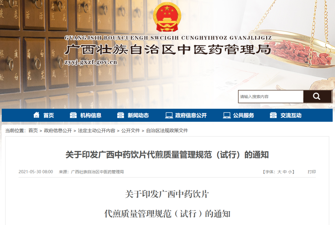 2014年10月,上海中藥行業(yè)協(xié)會(huì)制定印發(fā)《上海中藥行業(yè)中藥煎藥質(zhì)量管理規(guī)范》;2015年12月,浙江省中藥質(zhì)量控制中心制定印發(fā)《浙江省中藥飲片代煎服務(wù)工作質(zhì)量管理規(guī)范(試行)》;2019年1月,江蘇省無錫市梁溪區(qū)市場(chǎng)監(jiān)督管理局制定印發(fā)《關(guān)于進(jìn)一步加強(qiáng)藥品經(jīng)營企業(yè)開展中藥代煎、代配業(yè)務(wù)管理的通知》;2021年5月,廣西中藥藥事質(zhì)控中心、廣西藥師協(xié)會(huì)中藥傳承與創(chuàng)新研究專業(yè)委員會(huì)制定印發(fā)《廣西中藥飲片代煎質(zhì)量管理規(guī)范(試行)》。
