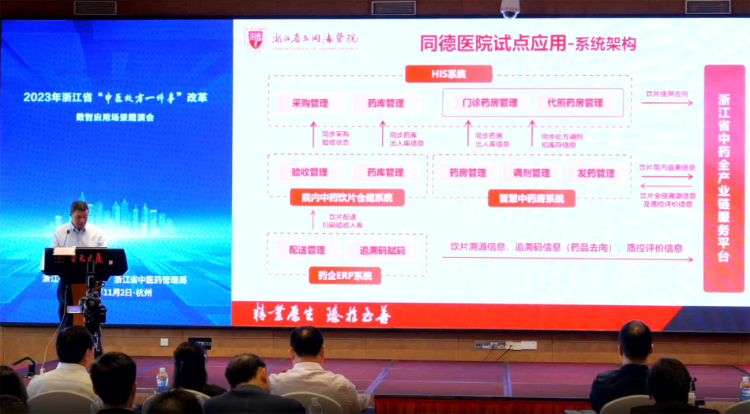 在中藥質(zhì)量數(shù)字治理版塊,浙江省中醫(yī)藥研究院做《浙江省中藥全產(chǎn)業(yè)鏈服務(wù)平臺(tái)》匯報(bào),介紹該平臺(tái)打造的從種植、加工、生產(chǎn)、流通到使用的中藥全過程閉環(huán)管理體系,并現(xiàn)場(chǎng)視頻展示了平臺(tái)運(yùn)作流程。杭州市中醫(yī)院在《浙派中醫(yī)院內(nèi)制劑安心管家全流程數(shù)字化服務(wù)體系的構(gòu)建》匯報(bào)中,介紹醫(yī)院基于中藥制劑全流程數(shù)字化追溯平臺(tái),建立透明、安全、可溯的全過程管理系統(tǒng),提升中藥制劑質(zhì)量,拓展中藥服務(wù)廣度。