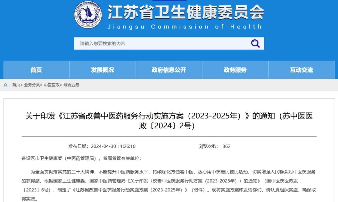 關(guān)于印發(fā)《江蘇省改善中醫(yī)藥服務(wù)行動(dòng)實(shí)施方案(2023-2025年)》的通知