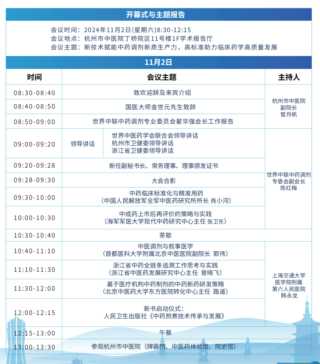 世界中醫(yī)藥學(xué)會(huì)聯(lián)合會(huì)中藥調(diào)劑專(zhuān)業(yè)委員會(huì)2024年學(xué)術(shù)年會(huì)即將在杭州召開(kāi)發(fā)表時(shí)間:2024-10-31 11:01 世界中醫(yī)藥學(xué)會(huì)聯(lián)合會(huì)中藥調(diào)劑專(zhuān)業(yè)委員會(huì)2024年學(xué)術(shù)年會(huì)將于2024年11月1-3日在浙江省杭州市召開(kāi)。 本次年會(huì)主題為“新技術(shù)賦能中藥調(diào)劑新質(zhì)生產(chǎn)力、高標(biāo)準(zhǔn)助力臨床藥學(xué)高質(zhì)量發(fā)展”,由世界中醫(yī)藥學(xué)會(huì)聯(lián)合會(huì)中藥調(diào)劑專(zhuān)業(yè)委員會(huì)主辦,杭州市中醫(yī)院、杭州市中醫(yī)藥協(xié)會(huì)中藥專(zhuān)業(yè)委員會(huì)、杭州市中藥質(zhì)控中心承辦。 作為本次年會(huì)的協(xié)辦單位,唐古信息參與建設(shè)的浙江省中藥全產(chǎn)業(yè)鏈服務(wù)平臺(tái)、杭州市衛(wèi)健委杭州市放心云煎藥平臺(tái)、全流程數(shù)據(jù)要素融合加速中藥調(diào)劑傳承創(chuàng)新、上海中醫(yī)藥大學(xué)附屬龍華醫(yī)院中藥飲片全流程追溯等相關(guān)項(xiàng)目案例,將會(huì)在年會(huì)上進(jìn)行分享。 誠(chéng)邀國(guó)內(nèi)外熱愛(ài)并從事中藥調(diào)劑學(xué)、臨床藥學(xué)等相關(guān)學(xué)科的專(zhuān)家學(xué)者蒞臨指導(dǎo)與交流,共同為探索具有中國(guó)特色的中藥調(diào)劑學(xué)發(fā)展之路作出努力。 會(huì)議議程 ![]() ![]() ![]() 如有參會(huì)意向 可長(zhǎng)按識(shí)別下方二維碼獲取參會(huì)信息 ![]() ![]() 掃碼查看更多會(huì)議信息 |